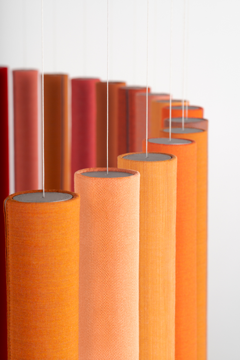 Soundsticks® wurde Anfang 2019 nach zweijähriger Entwicklungszeit in Zusammenarbeit mit der Designerin Andrea Ruggiero eingeführt. Soundsticks® bestehen aus Textilabfällen, die in Form eines Rohrs geformt sind. Sie werden mit übrig gebliebenen Textilien aus der Produktion überzogen und an den Enden durch recycelte Aluminiumkappen zusammengehalten. Dieses einzigartige Produkt kann je nach Bedarf und Platz linear oder radial an Schienen aufgehängt werden. Die Sichtschutz Raumteiler Sticks Soundsticks sind gerade für Büros und Wohnzimmer gut geeignet.